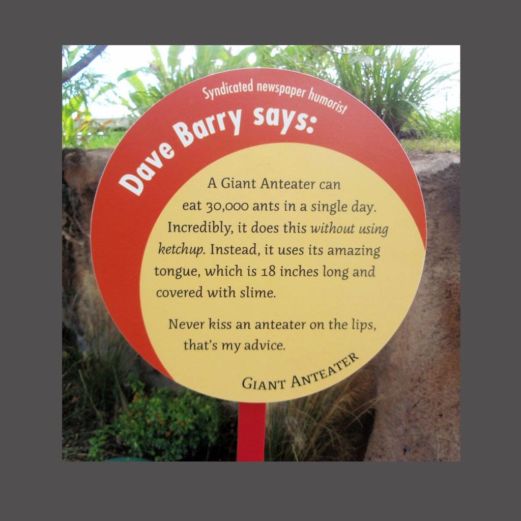 A number of years ago, one of my favorite clients named Steve, at the Boston-based exhibit firm Lyons/Zaremba, was working on a new exhibit area at Zoo Miami called Amazon and Beyond. Steve wanted lighthearted, accessible, yet informative content, and knowing that I’m not especially humorous, he suggested that Dave Barry might lend us a hand.