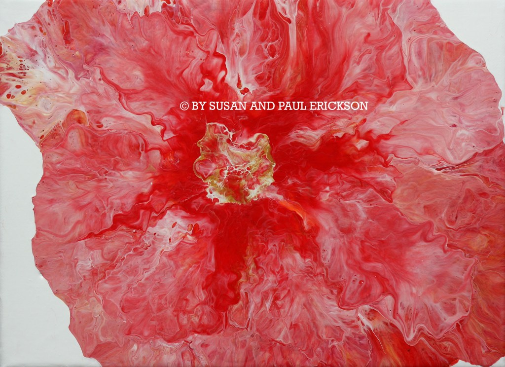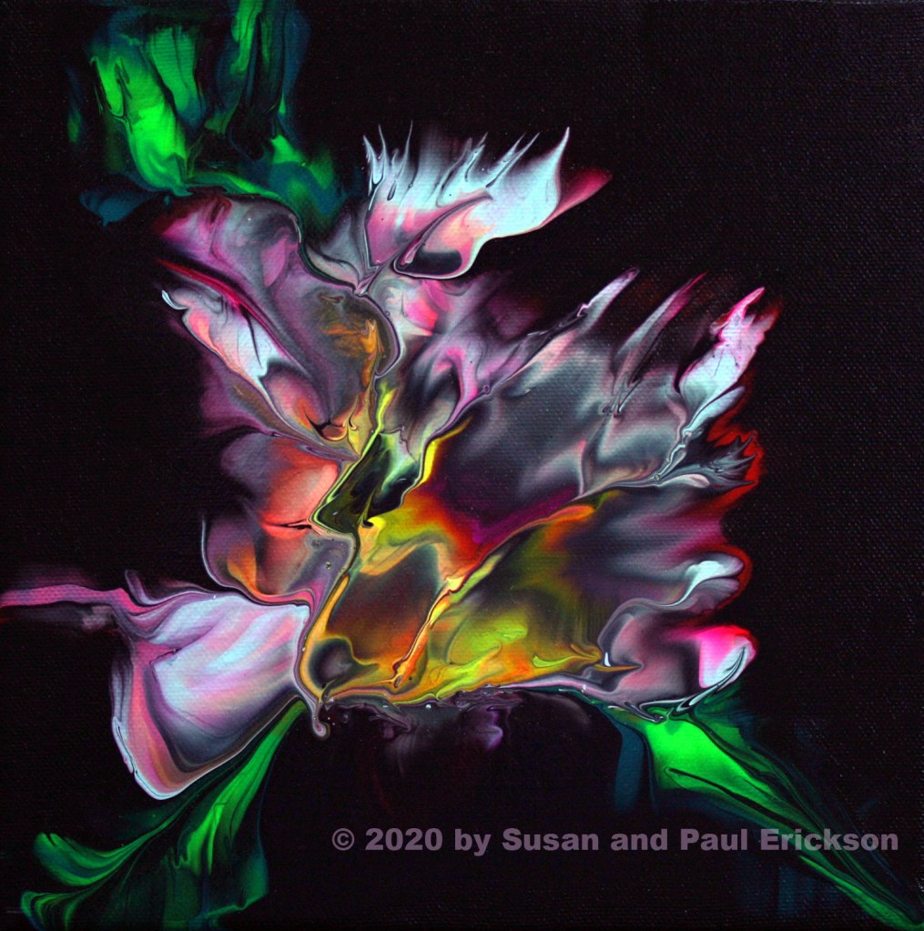 BLOSSOMING © BY SUSAN ERICKSON, ORIGINAL ACRYLIC ON CANVAS 9″ x 12″ $35