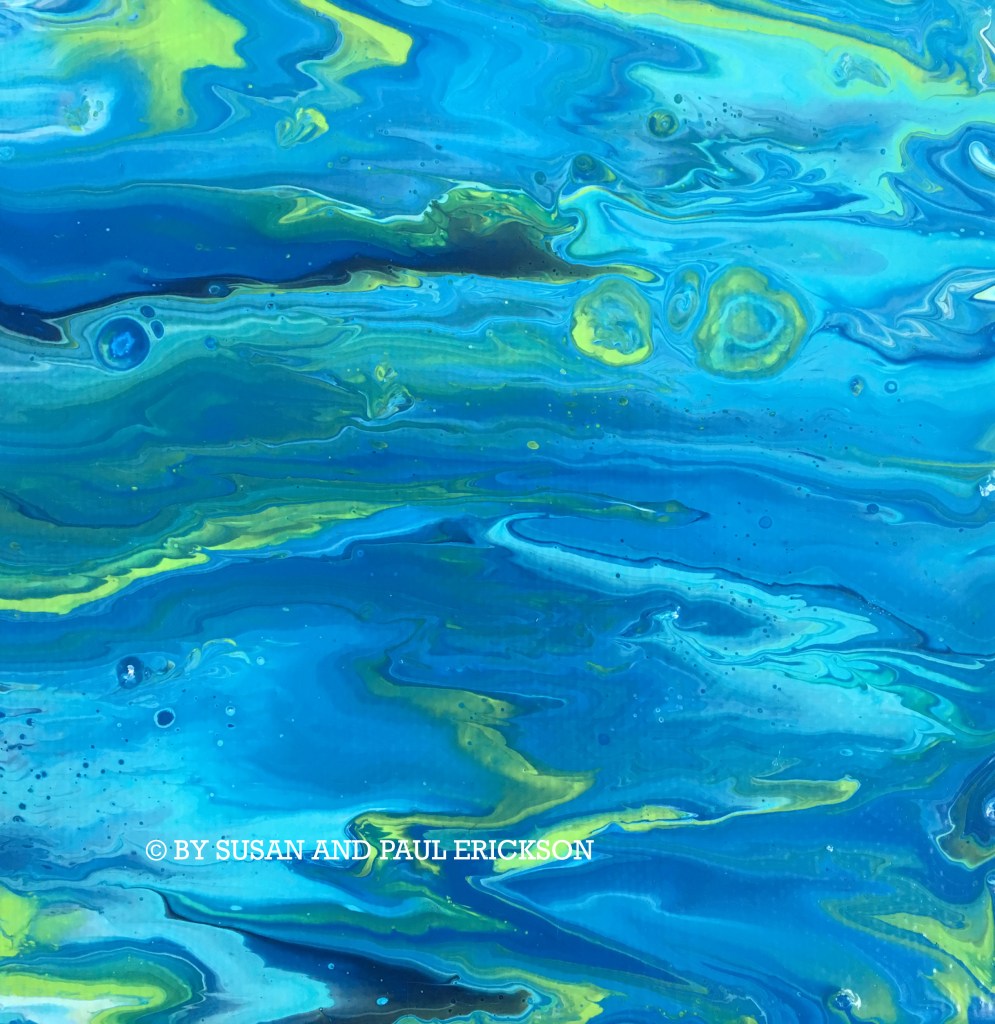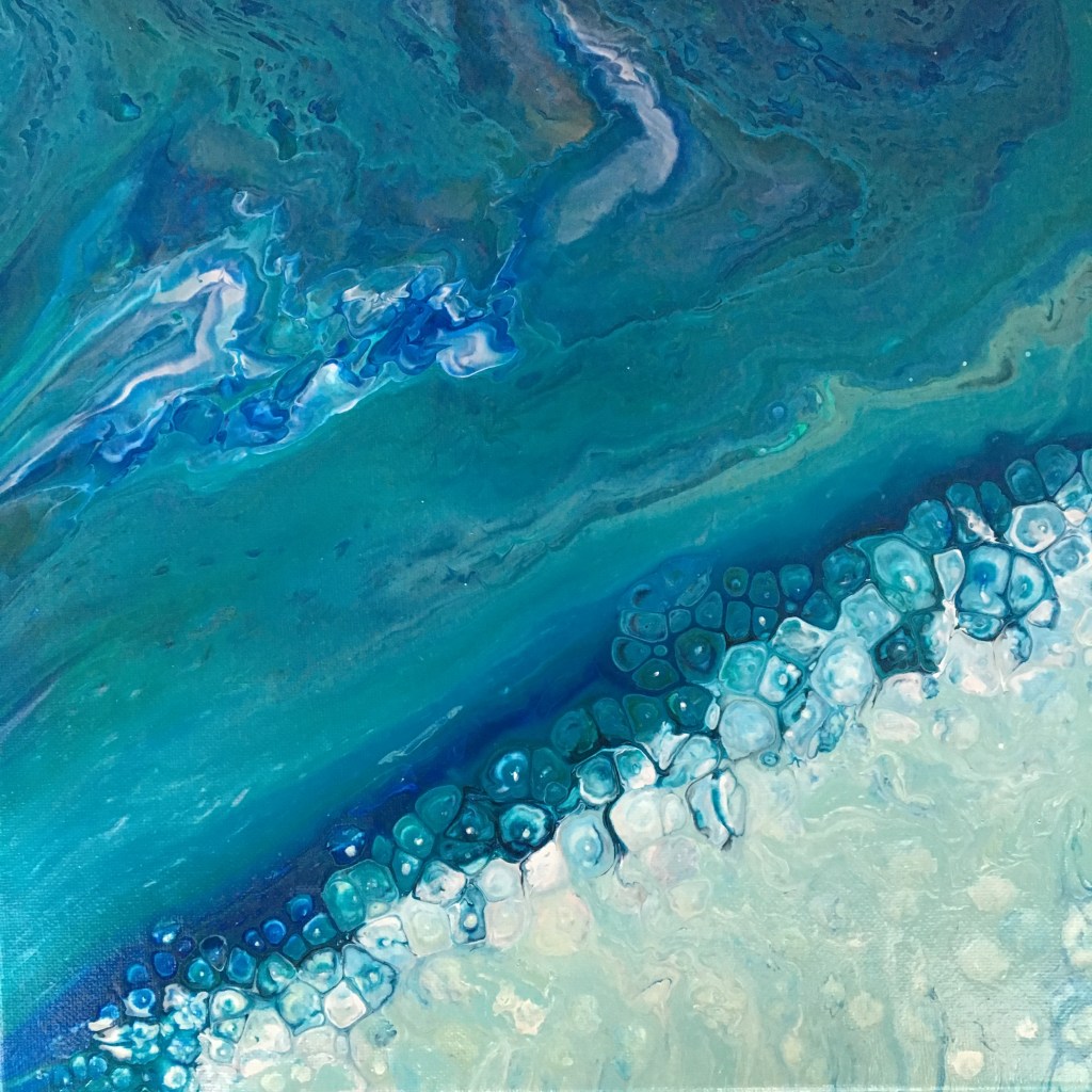 COASTAL LAGOONS, © BY SUSAN ERICKSON, ACRYLIC ON CANVAS 8″ X 8″ SOLD