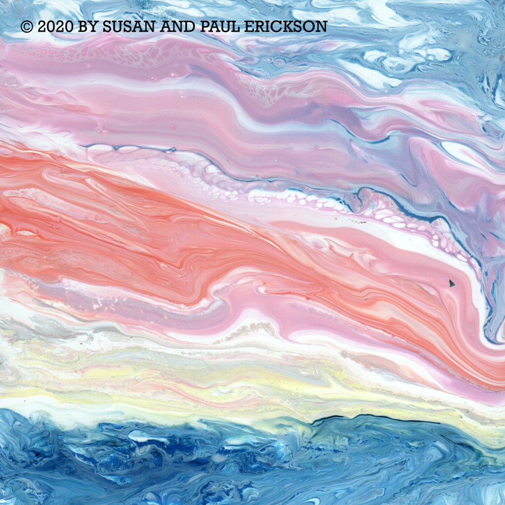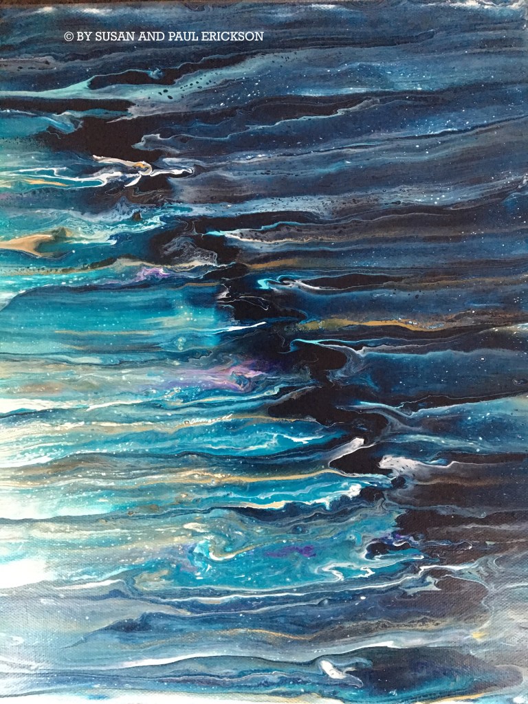 EVENING RIPPLES © BY SUSAN ERICKSON, ORIGINAL ACRYLIC ON CANVAS 11″ X 14″ $60