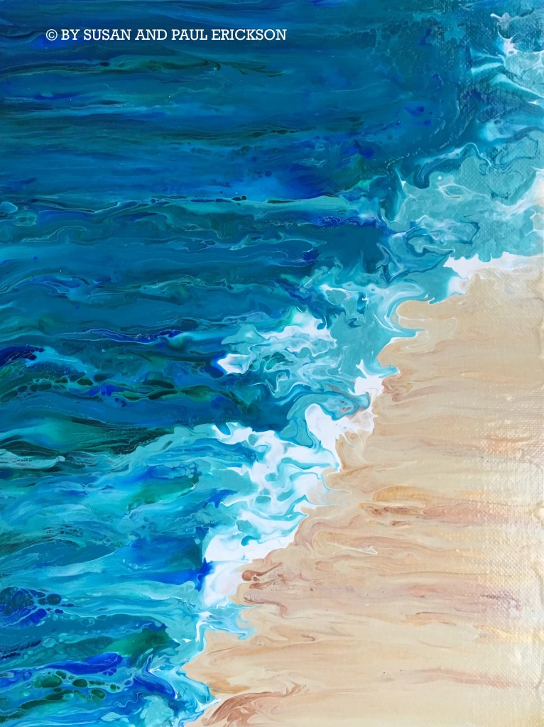 SURF ZONE © BY SUSAN ERICKSON, ACRYLIC ON CANVAS 9″ X 12″ $35