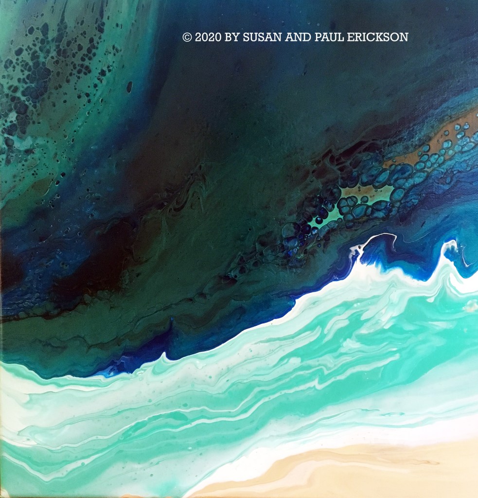 CHRYSOCOLLA © BY SUSAN ERICKSON, ORIGINAL ACRYLIC ON CANVAS 12″ X 12″ SOLD $50